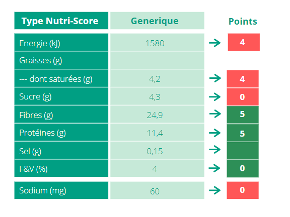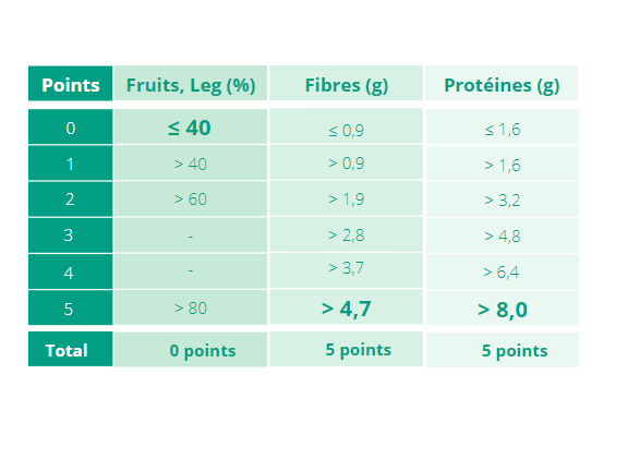 Étape 3Attribuez des points à chaque élément du tableau nutritionnel en vous basant sur deux échelles. Dans cette deuxième étape pour les nutriments favorables pour le Nutri-Score. |
